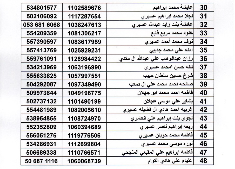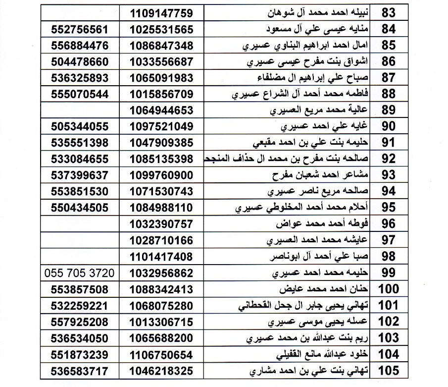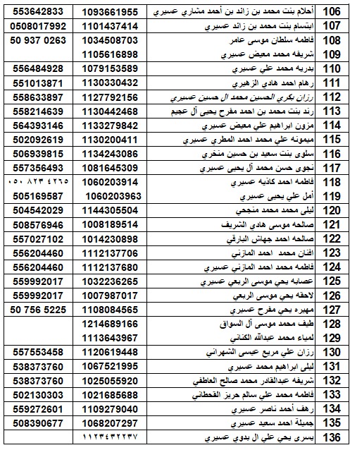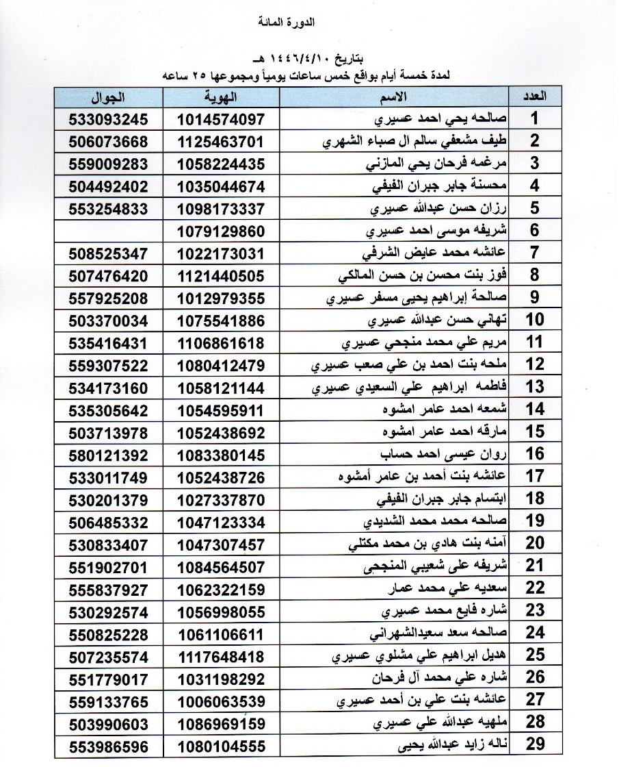 اسماء المتدربات في دورة اساسيات تربية النحل رقم 100