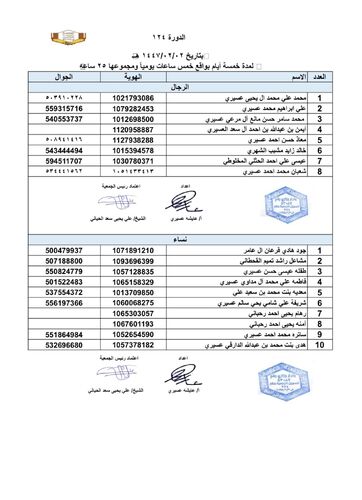 افتراضي اسماء المتدربين والمتدربات في دورة اساسيات تربية النحل رقم 124