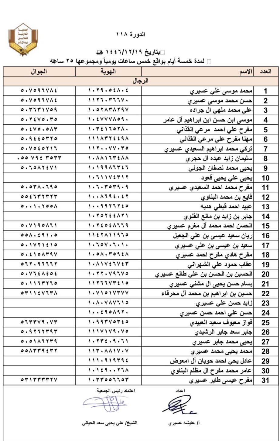 افتراضي اسماء المتدربين والمتدربات في دورة اساسيات تربية النحل رقم 118