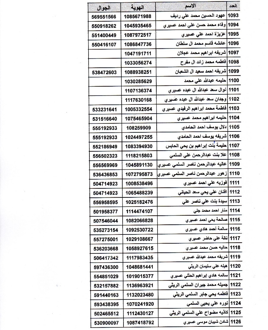اسماء المتدربات في دورة اساسيات تربية النحل رقم (43 و 44 و 45 و46)