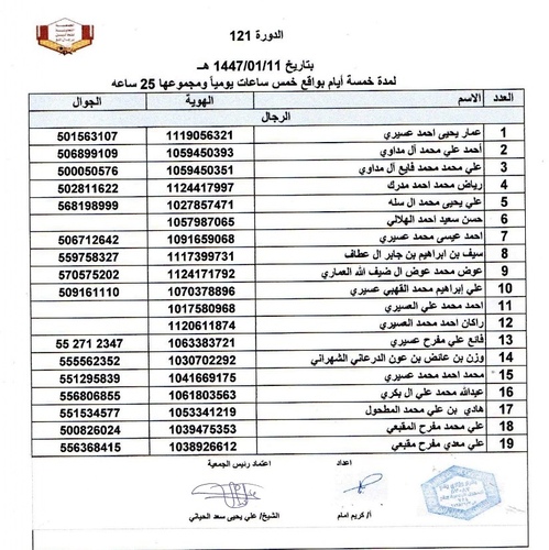 تحت إشراف فرع وزارة البيئة والمياه والزراعة بمنطقة عسير تقيم الجمعية التعاونية للنحالين برجال المع دورات تدريبية في اساسيات تربية النحل بتاريخ 11/ 1 /1447هـ رقم الدورة 121 |