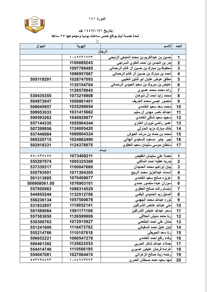 افتراضي أسمآء المتدربين والمتدربات في دورة اساسيات تربية النحل رقم 141