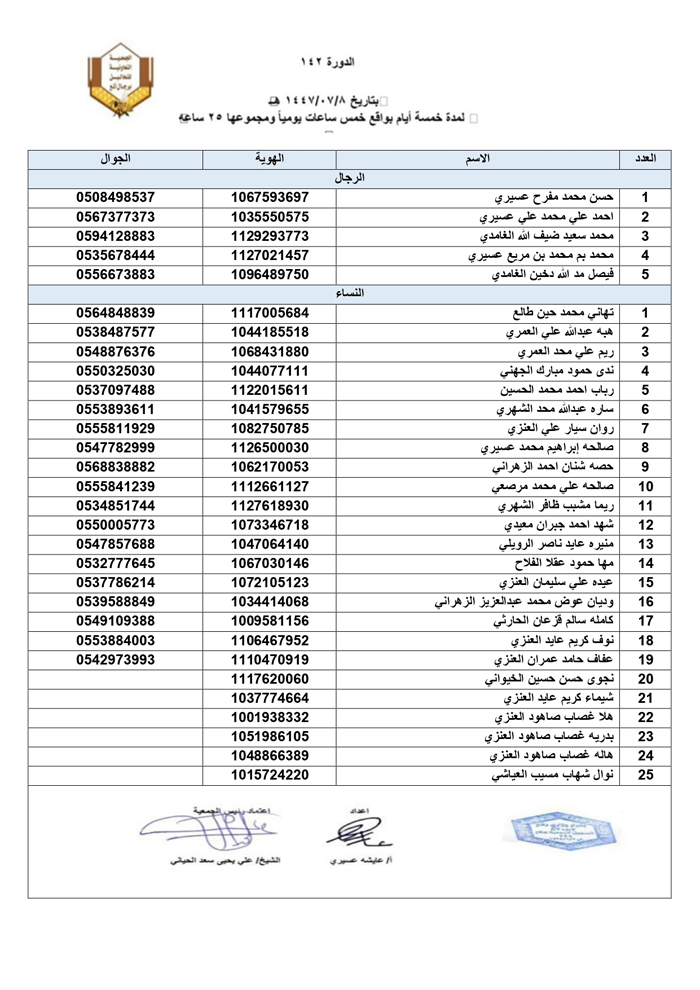 افتراضي أسمآء المتدربين والمتدربات في دورة اساسيات تربية النحل رقم 142