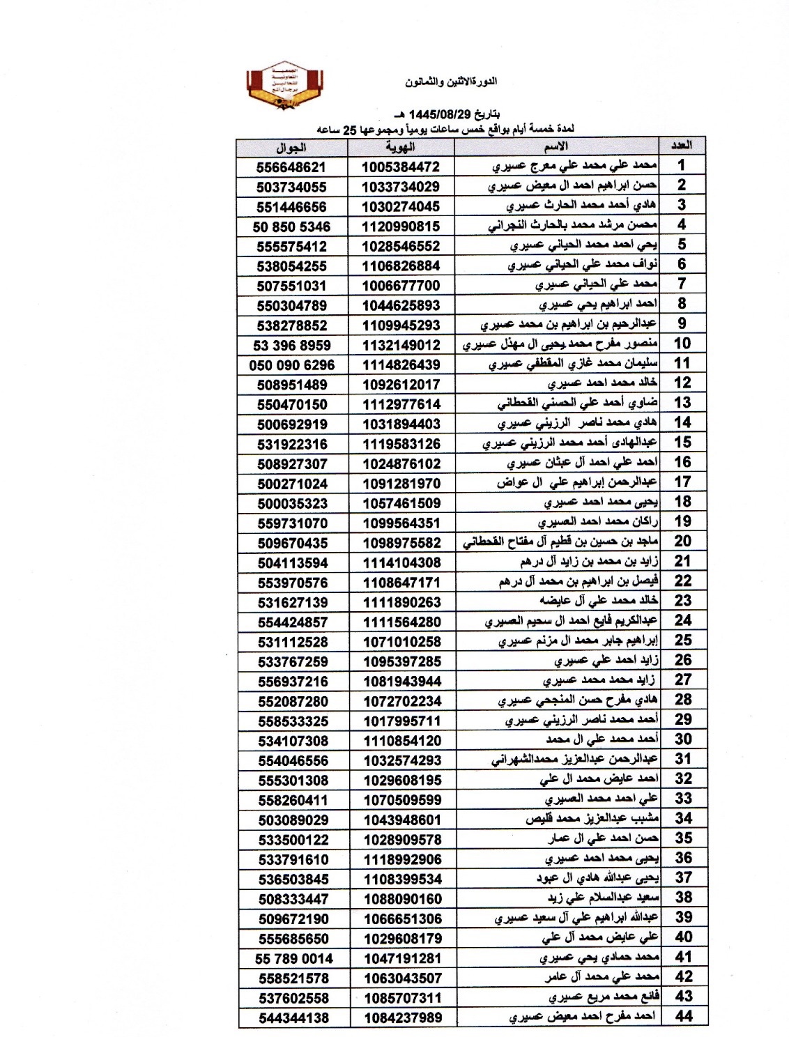 افتراضي اسماء المتدربين في دورة اساسيات تربية النحل للرجال رقم 82