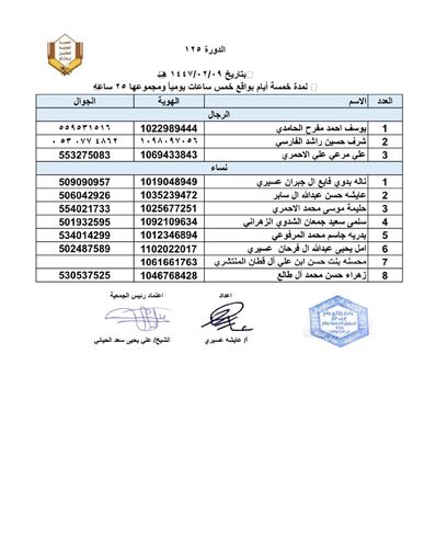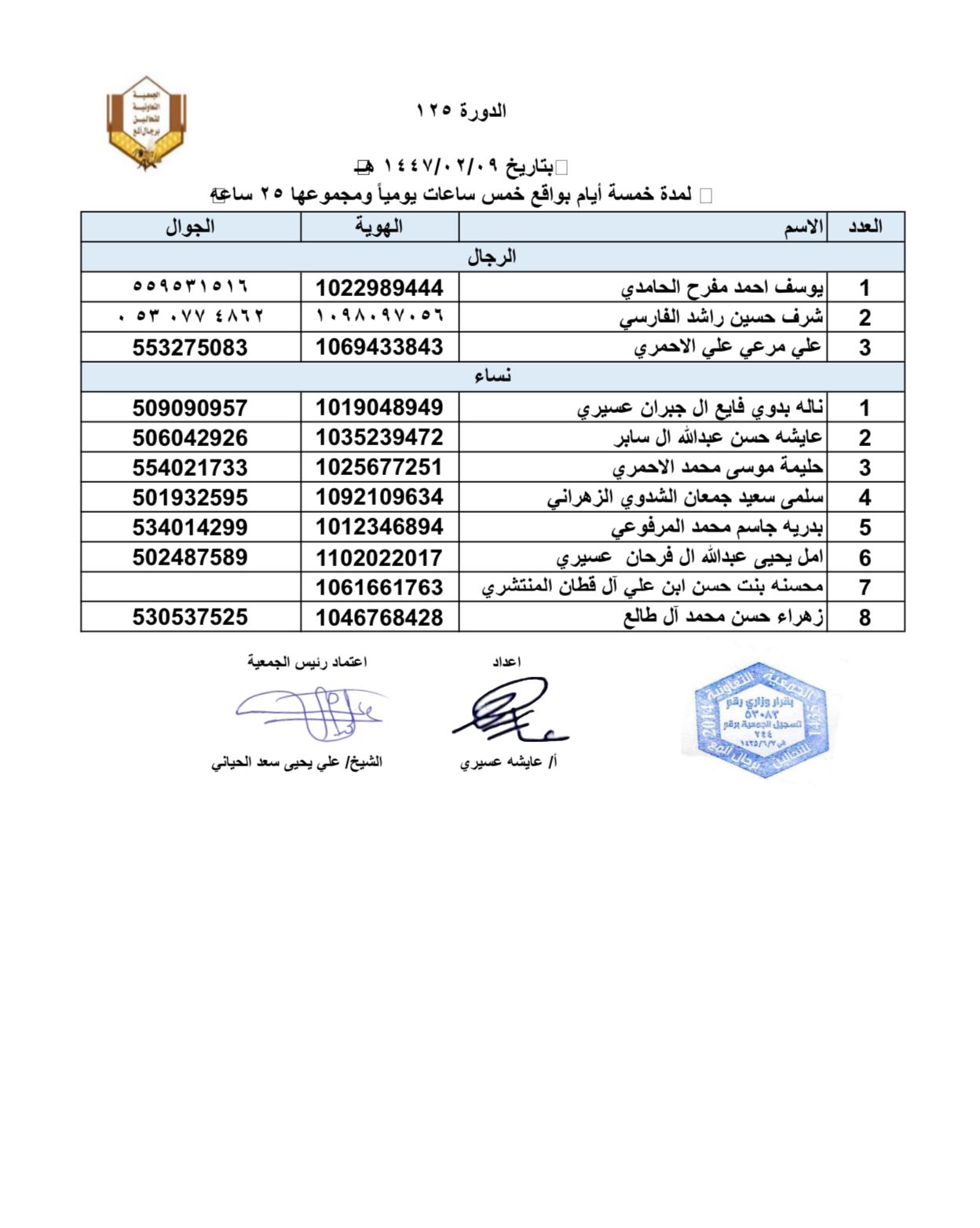 افتراضي اسماء المتدربين والمتدربات في دورة اساسيات تربية النحل رقم 125