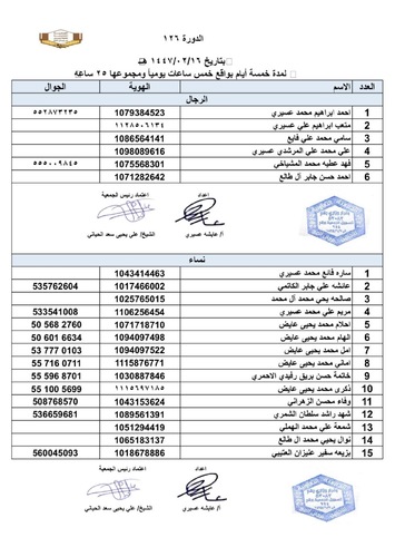 افتراضي اسماء المتدربين والمتدربات في دورة اساسيات تربية النحل رقم 126