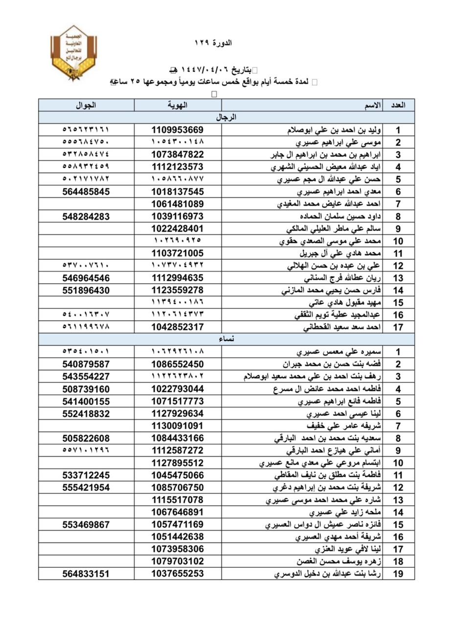 افتراضي أسمآء المتدربين والمتدربات في دورة اساسيات تربية النحل رقم 129