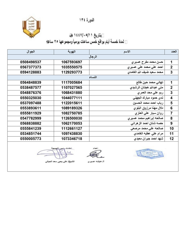افتراضي أسمآء المتدربين والمتدربات في دورة اساسيات تربية النحل رقم 134