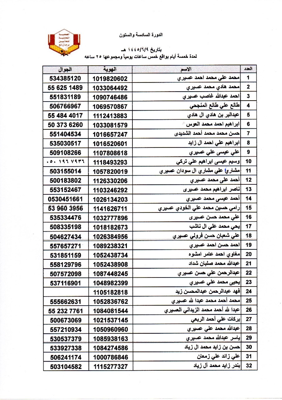 افتراضي اسماء المتدربين في دورة اساسيات تربية النحل رقم 65 و 66