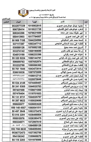 افتراضي اسماء المتدربات في دورة اساسيات تربية النحل رقم 74 و75