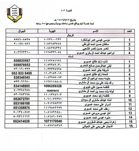 افتراضي اسماء المتدربين والمتدربات في دورة اساسيات تربية النحل رقم 111