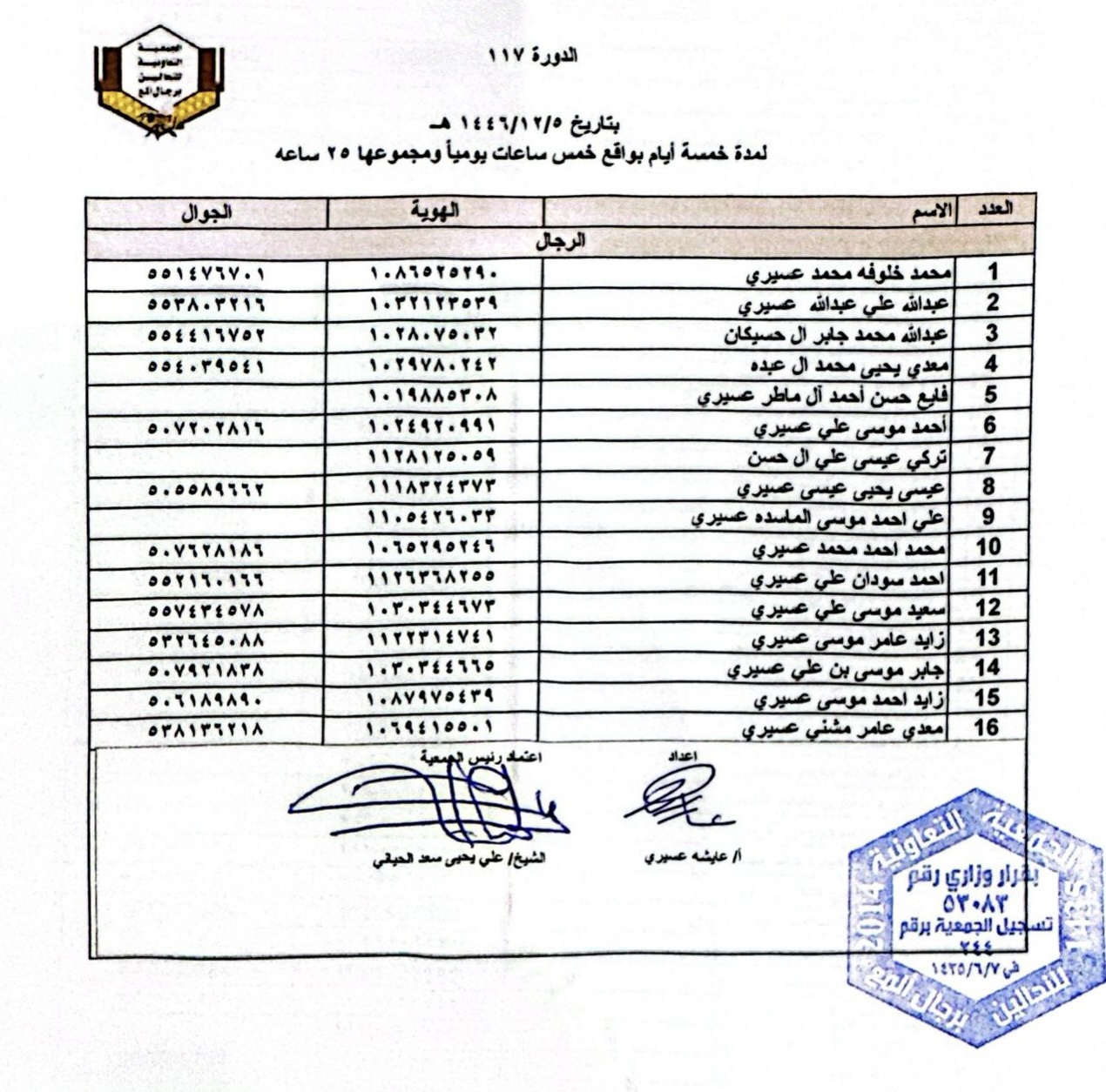 افتراضي اسماء المتدربين والمتدربات في دورة اساسيات تربية النحل رقم 117