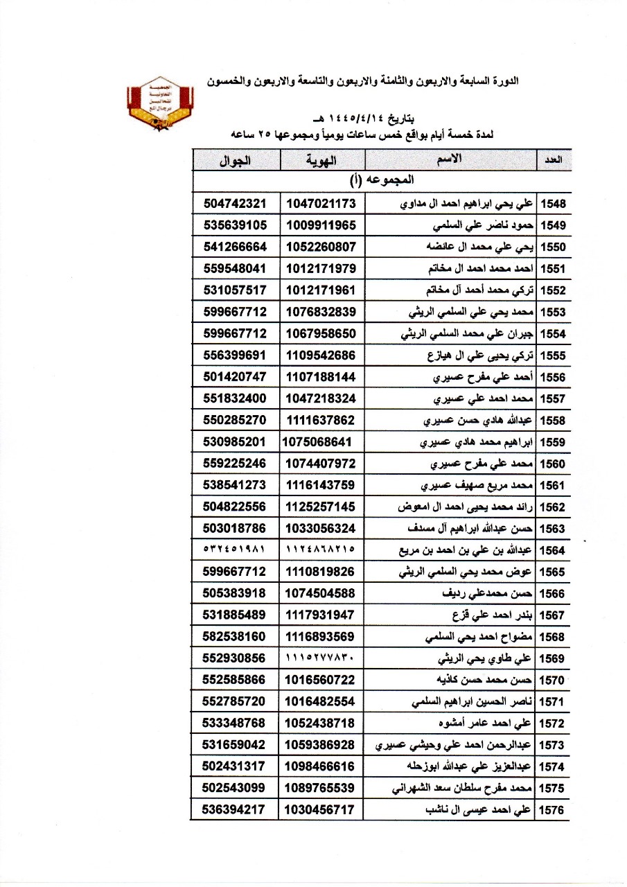 اسماء المتدربين في الدورة رقم 53 و 54 خلال الفترة من 14 الى 18 / 4 / 1445هـ