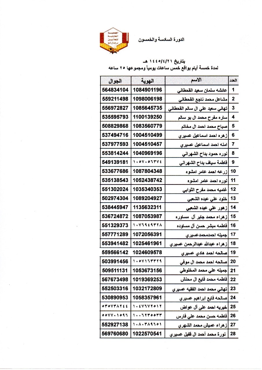 افتراضي اسماء المتدربات في دورة اساسيات تربية النحل رقم 56